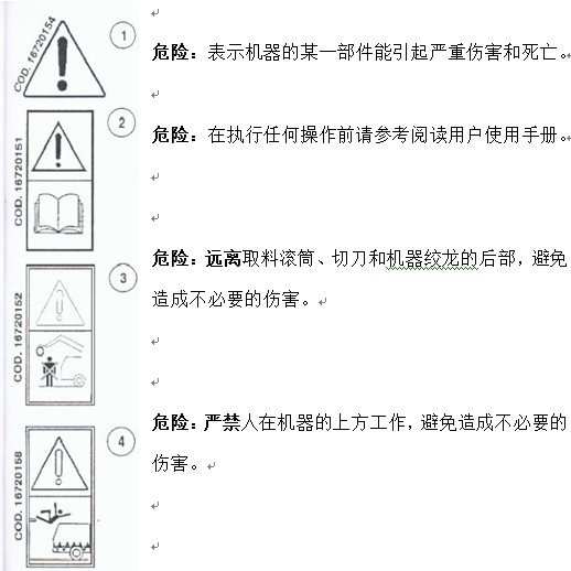 4. 严禁站在取料滚筒附近,料堆范围内及青贮堆的顶部。