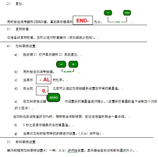 1. 同时按住显示器上的“ZERO”和“TOTAL”键,检查电源电压是否在9V-16V的工作范围内;