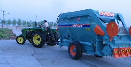 (1)、牵引式————靠拖拉机输出动力通过PTO传动轴带动搅拌车工作。(包括立式)